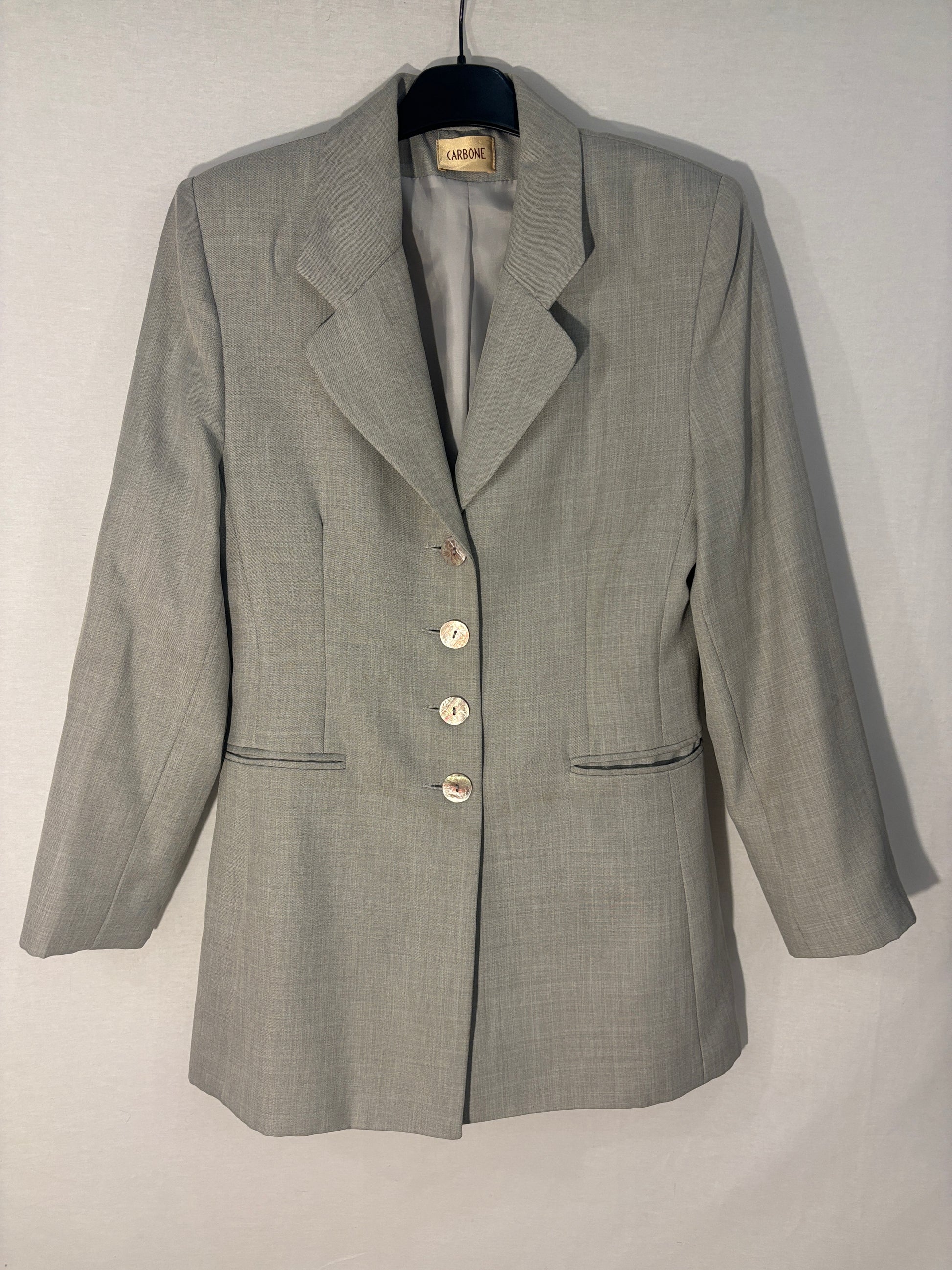 🏷️ Marque : Carbone 📏 Taille : 40 sur étiquette (coupe généreuse - convient idéalement à un 38) 🎨 Couleur : Gris & vert - nuances raffinées et tendance ⭐ État : Très bon état - pièce impeccablement conservée