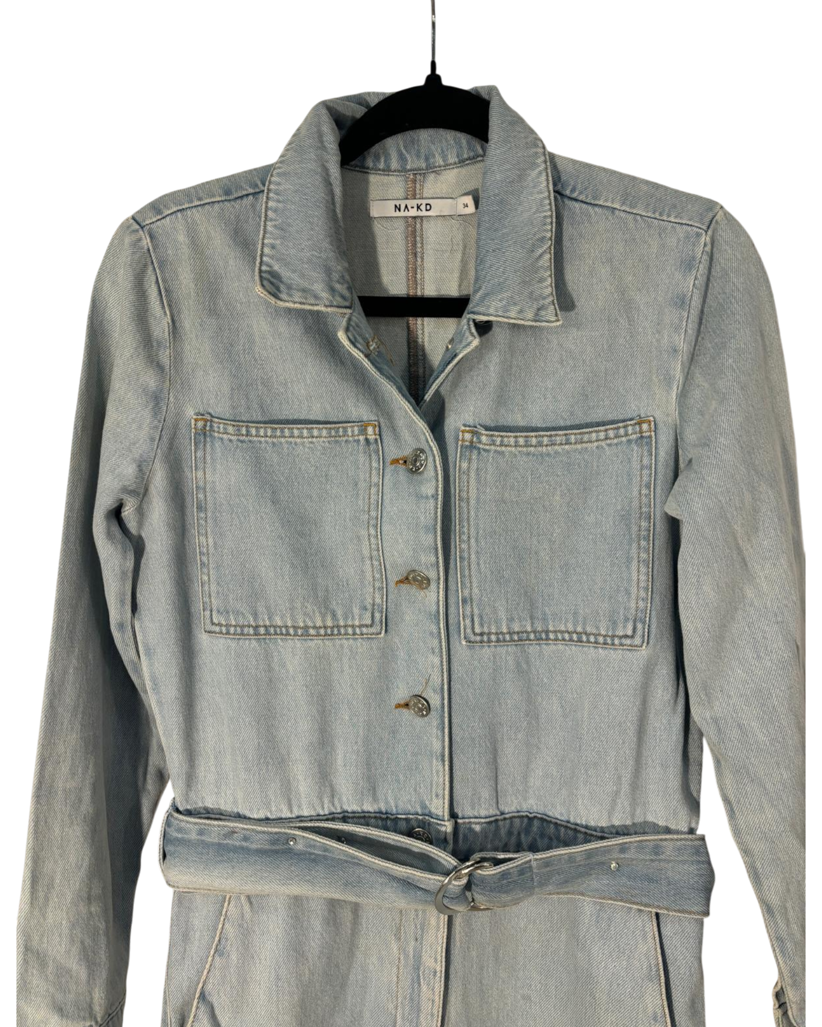 Combinaison NA-KD en taille 34/36, coloris bleu, en excellent état. Un choix élégant et soigné qui saura sublimer votre garde-robe.
