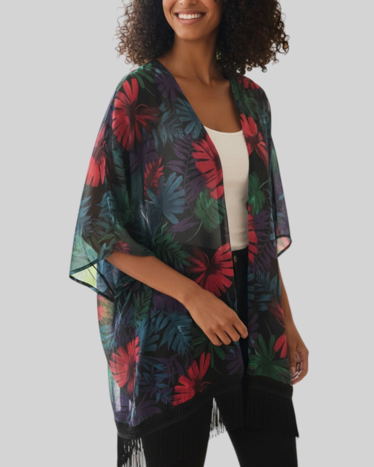 Pancho  fleuri de la marque Cache Cache, taille unique. Ce modèle neuf se distingue par son élégance florale délicate et raffinée.