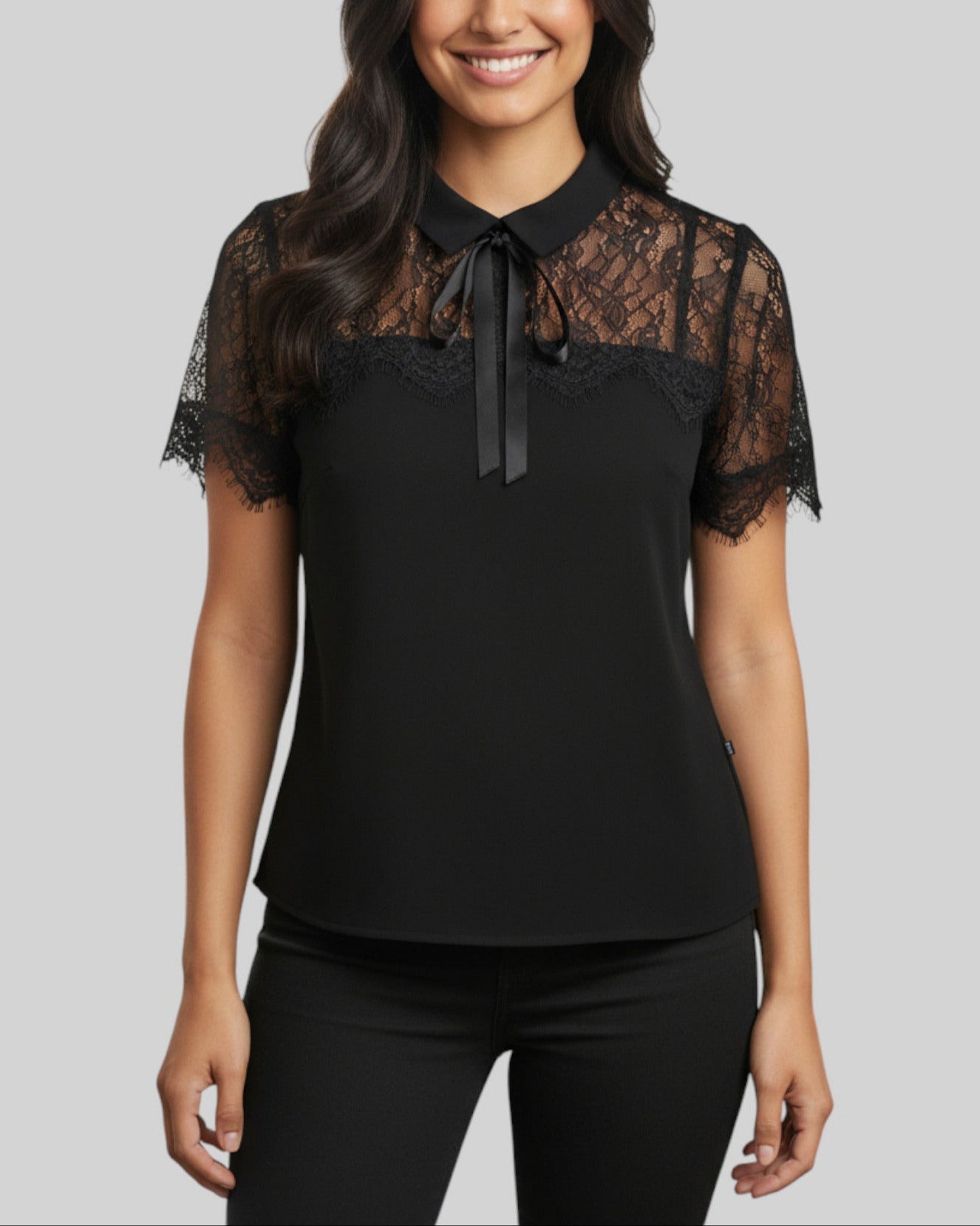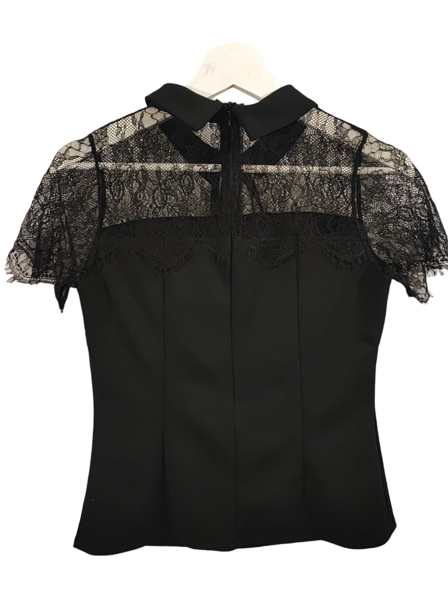 Découvrez ce haut en dentelle élégant, confectionné en Italie, disponible en taille S et présenté dans un noir sophistiqué. Parfait pour sublimer votre style avec une touche raffinée.