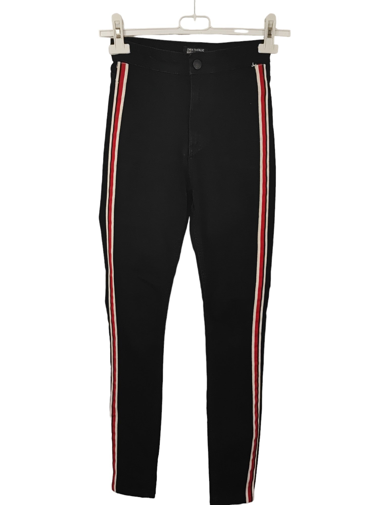 Jean skinny Zara, taille XS, en noir et rouge, soigneusement entretenu et en très bon état.