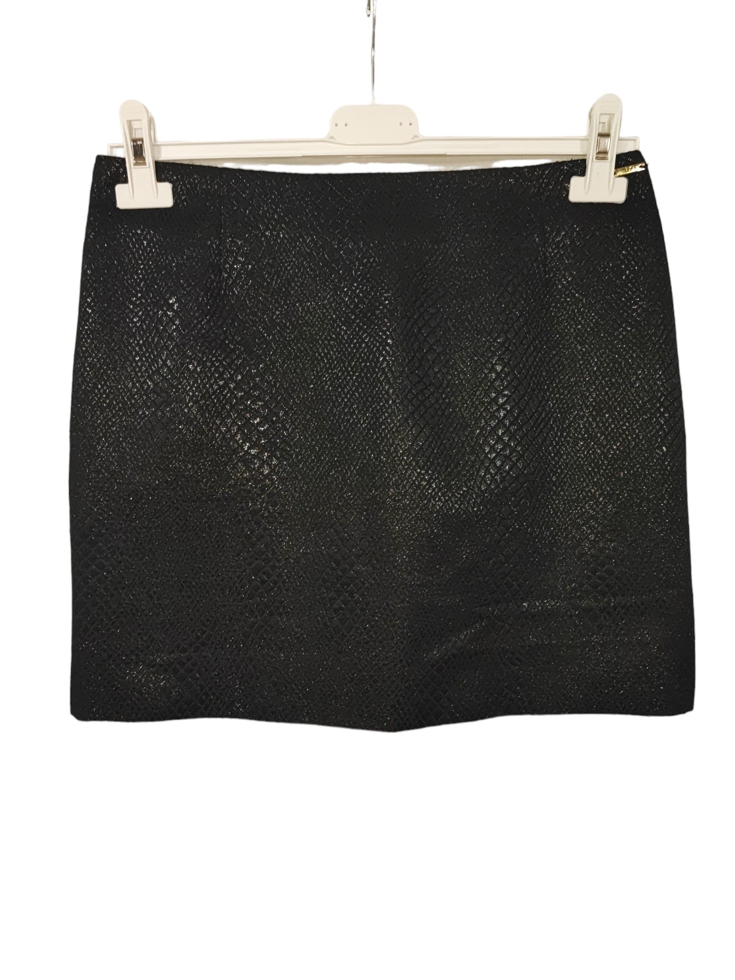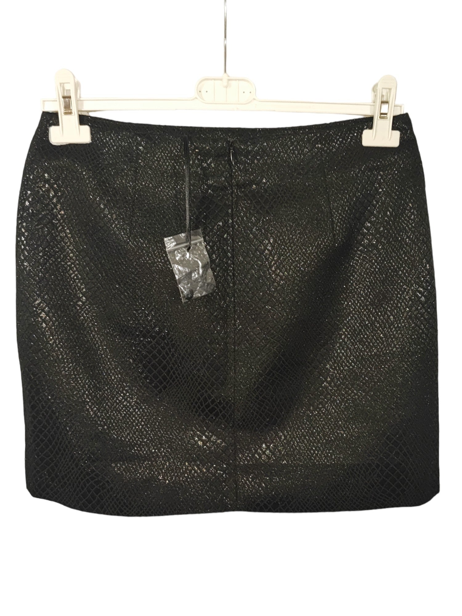Jupe courte La City, taille 36, en noir brillant avec une longueur de 38 cm. Neuve et toujours accompagnée de son étiquette, parfaite pour un look sophistiqué.