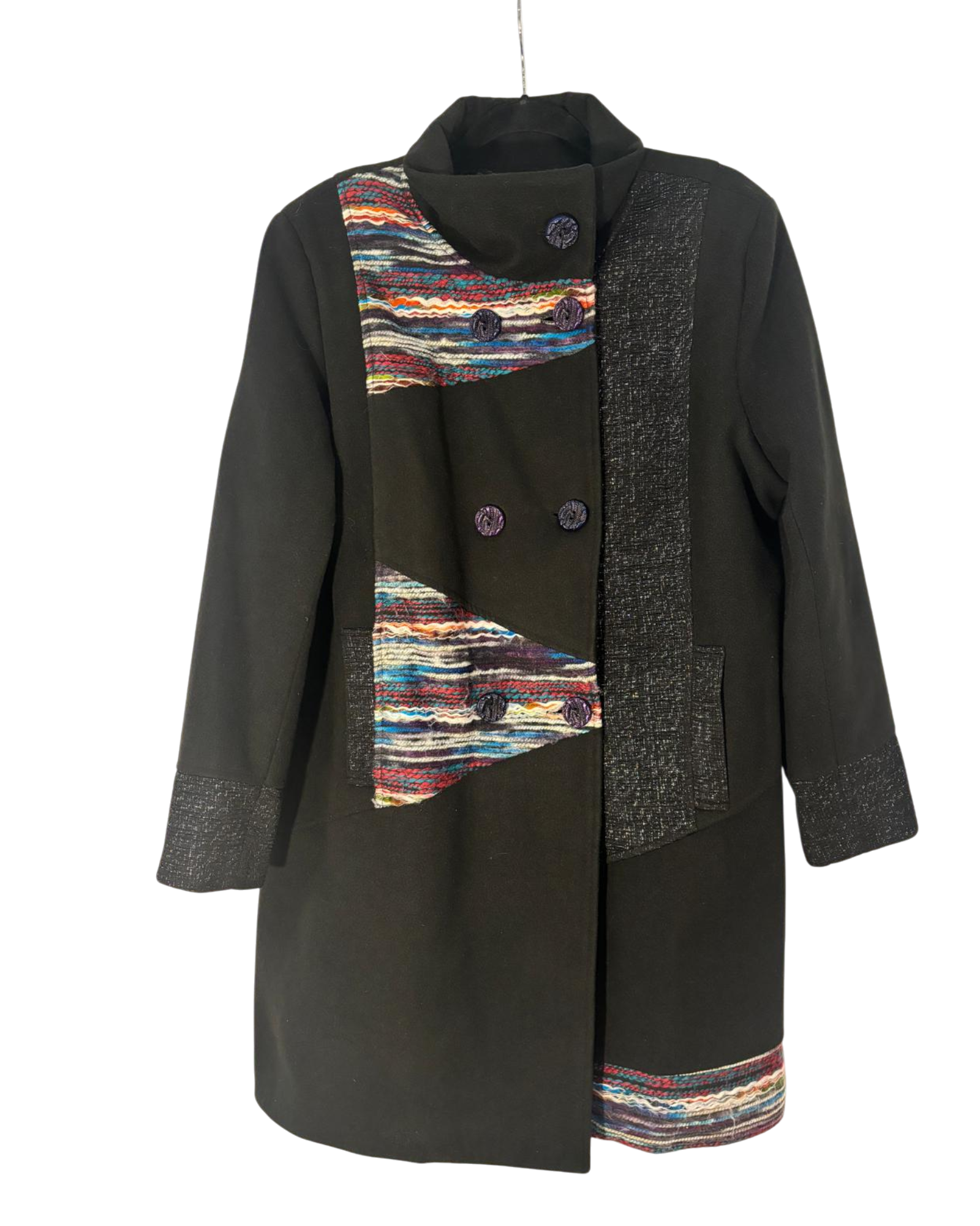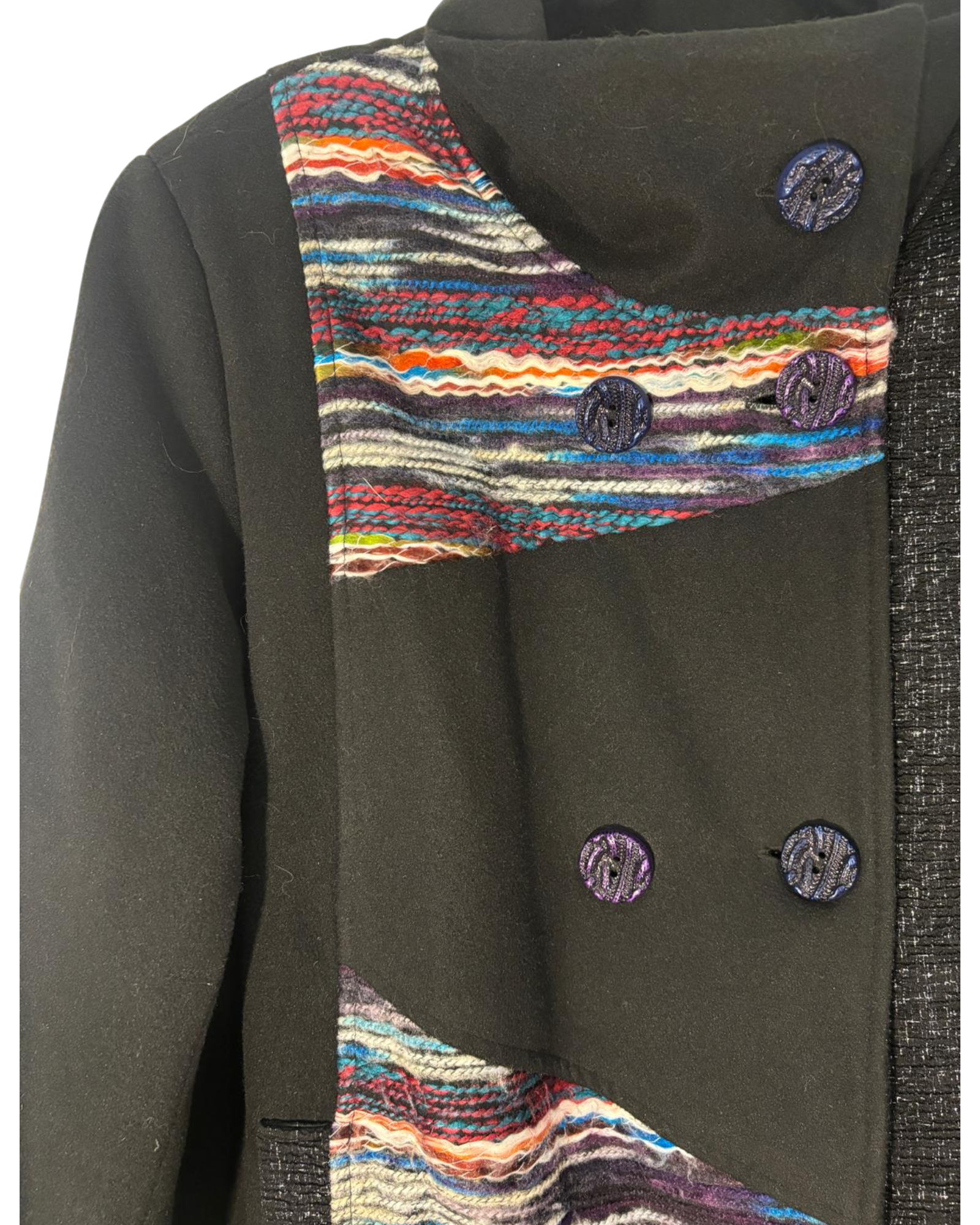 Manteau DPM taille XL, noir avec des accents colorés, en très bon état. Idéal pour un look unique et durable.