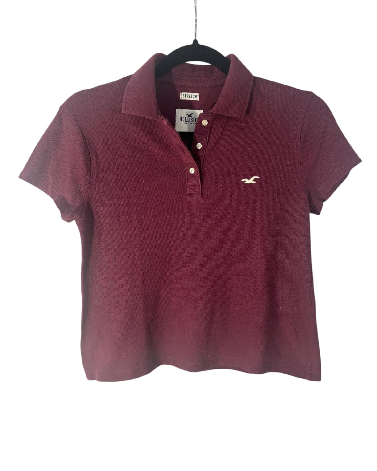 Polo Hollister en taille XS, couleur bordeaux, en excellent état. Un choix idéal pour un style décontracté et soigné.