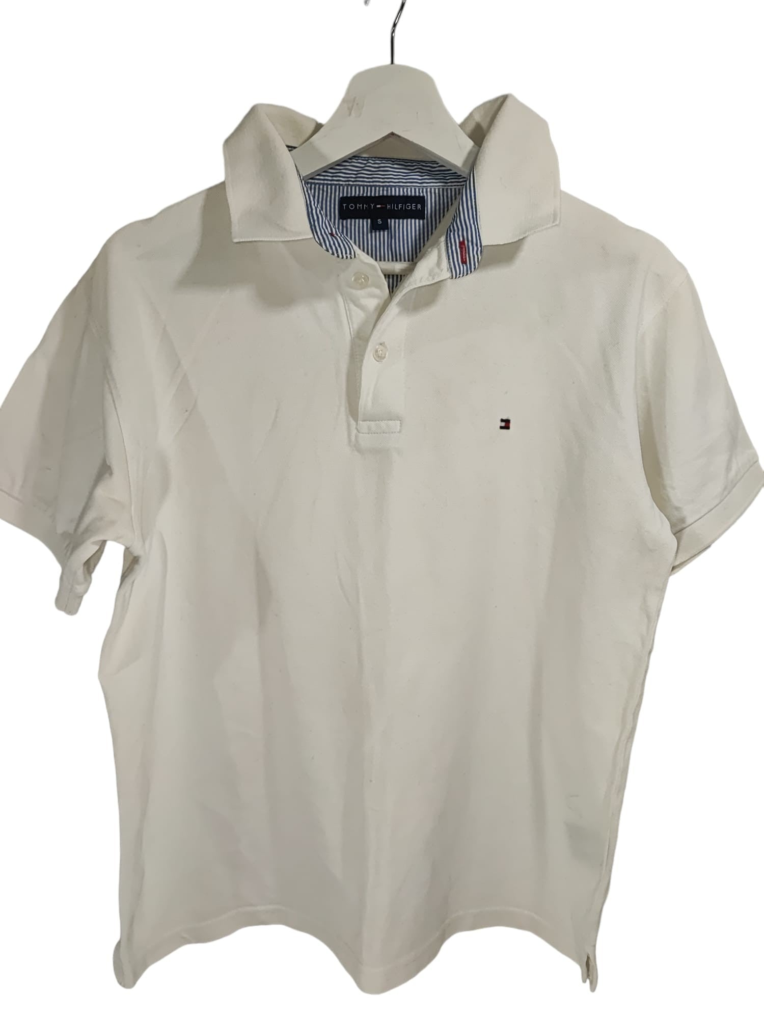 Polo Tommy Hilfiger blanc, taille S mais adapté pour une taille M, en excellent état. Parfait pour un style élégant et décontracté.