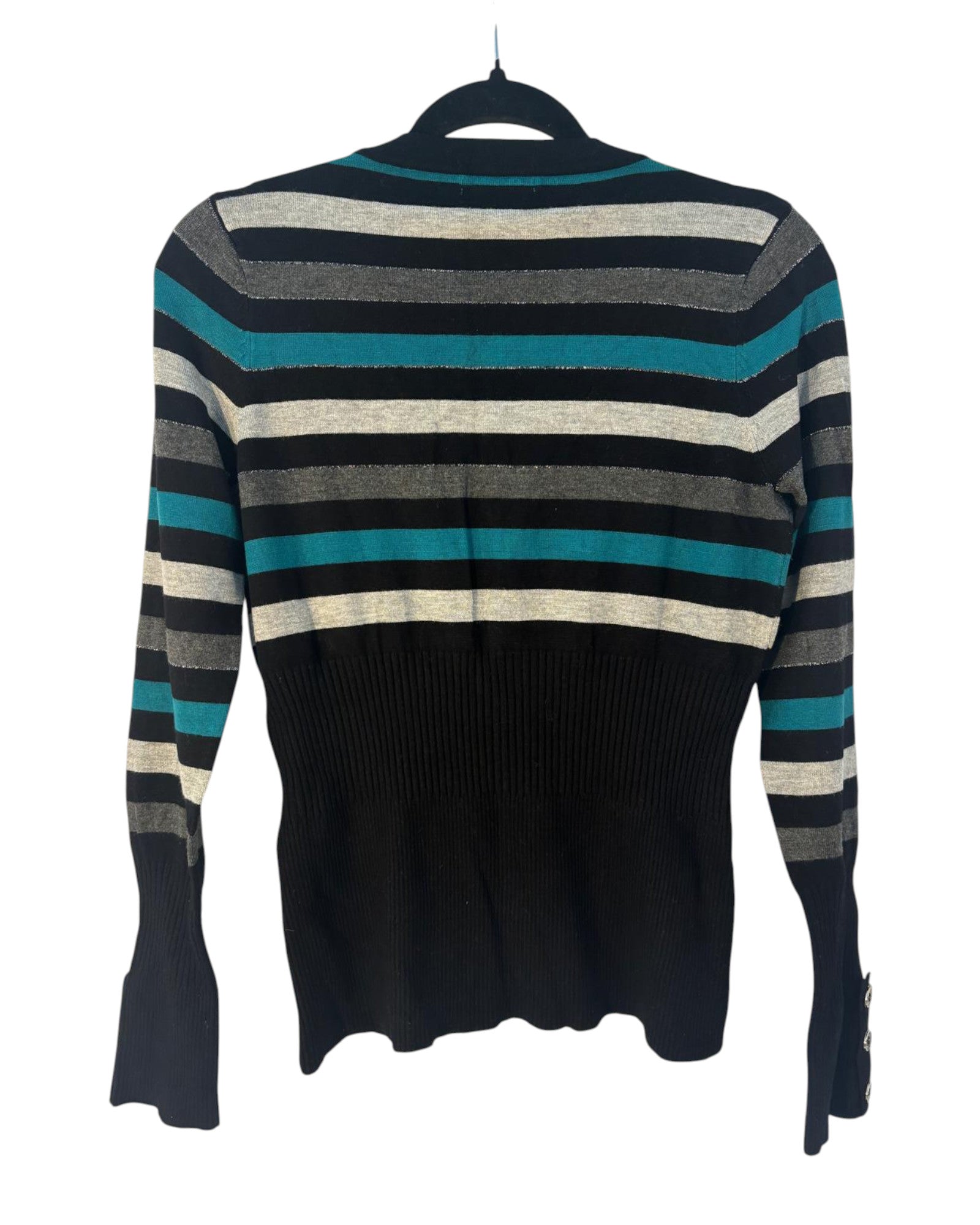 Succombez au charme de ce pull signé Patrice Bréal, taille XS, alliant élégamment noir et nuances multiples. En excellent état, il apporte une touche sophistiquée et dynamique à votre garde-robe.