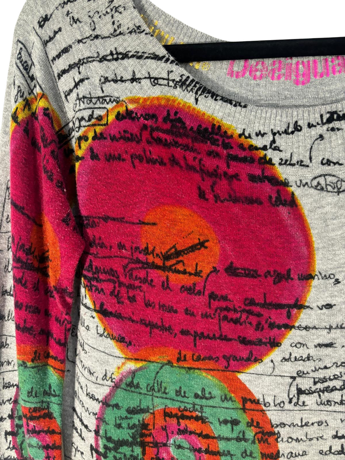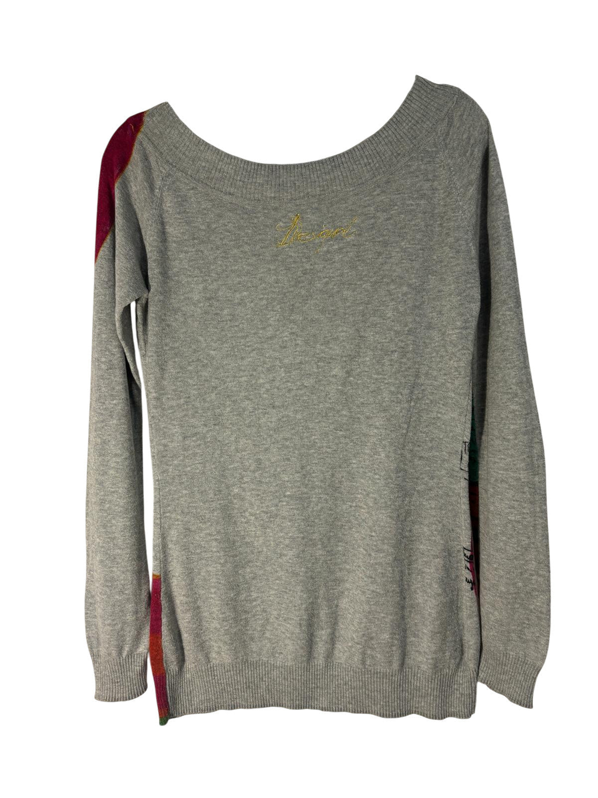 Découvrez ce pull Désigual en taille M, dans un gris rehaussé de touches colorées. Son excellent état en fait un choix idéal pour apporter une touche unique et dynamique à votre garde-robe.