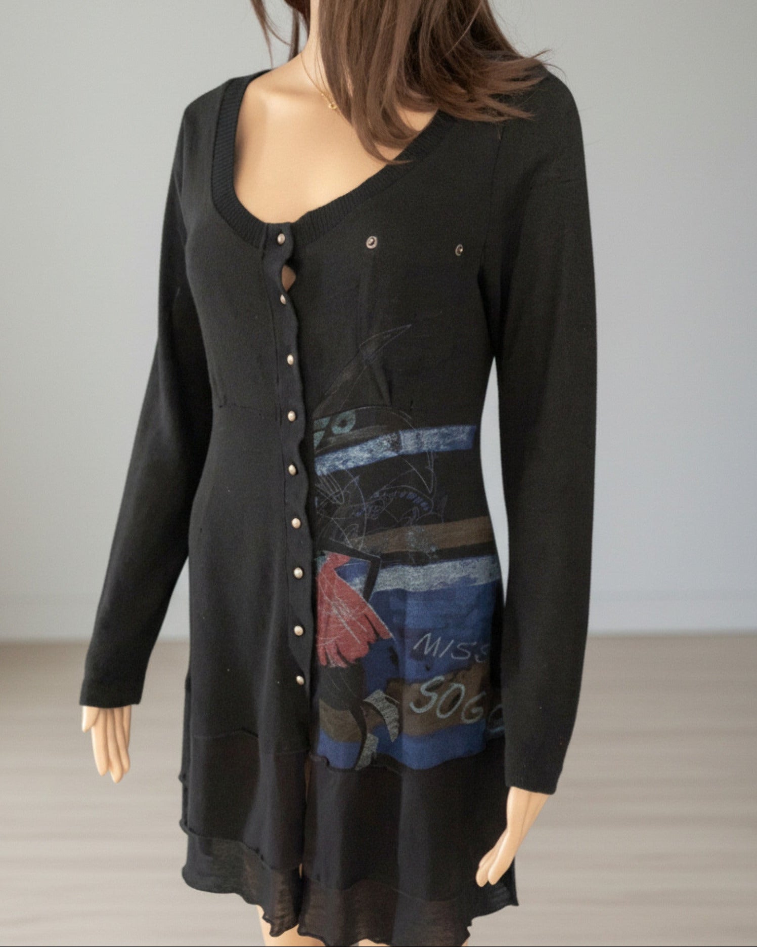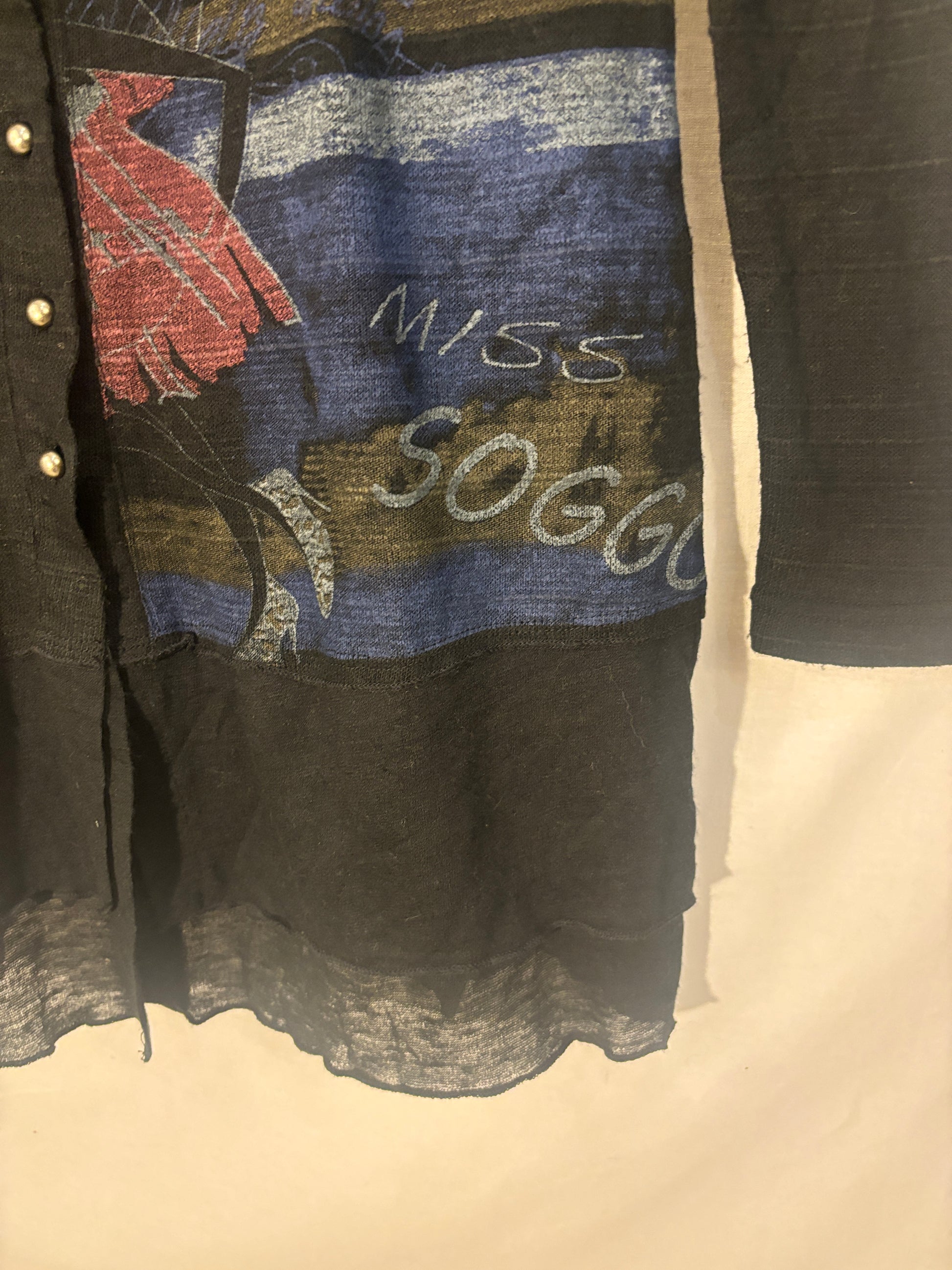 🏷️ Marque : Soggo Collection 📏 Taille : M/S - coupe adaptable 🎨 Couleur : Noir & Coloré - énergie positive garantie ⭐ État : Très bon état - pièce soigneusement sélectionnée