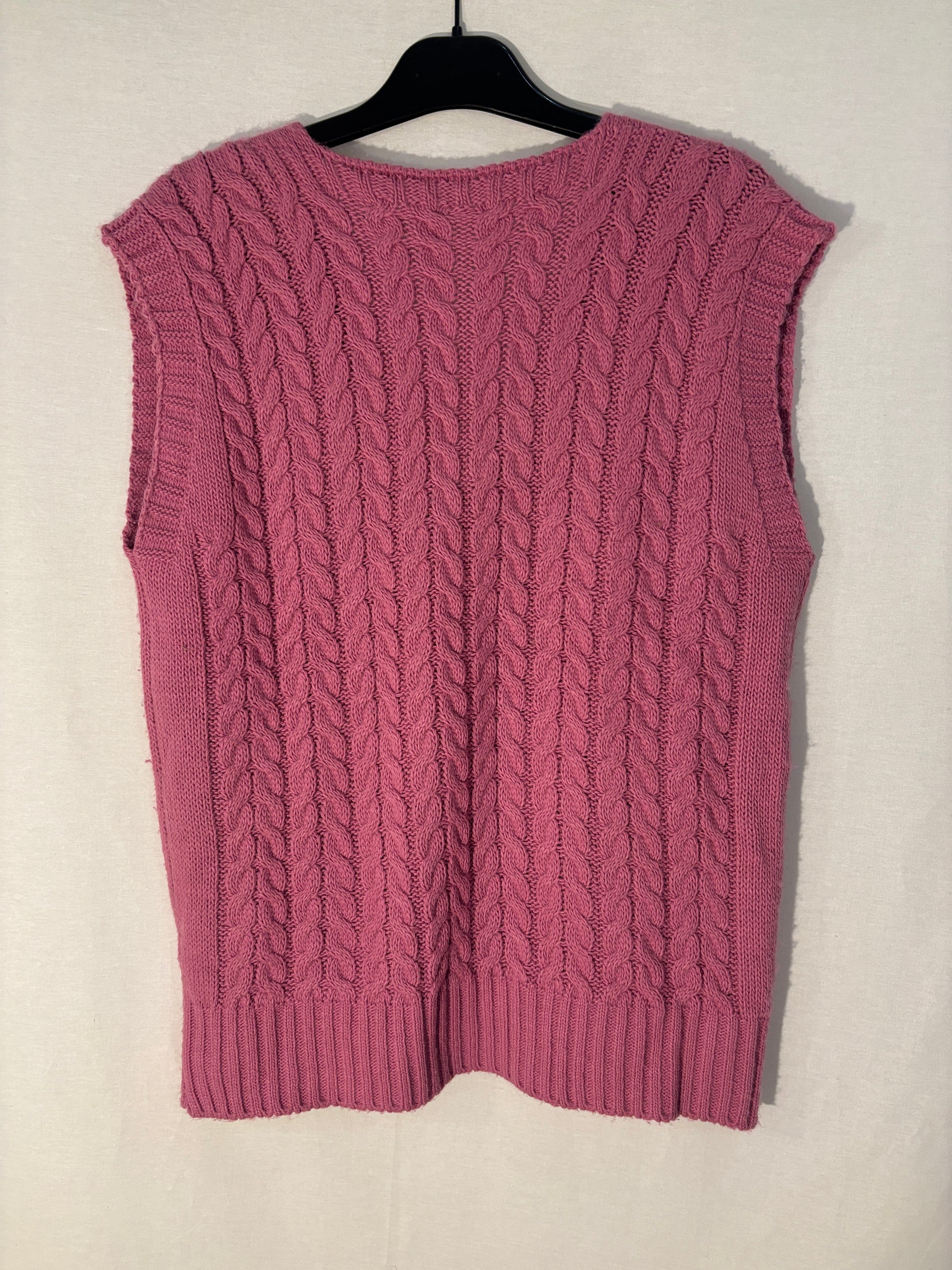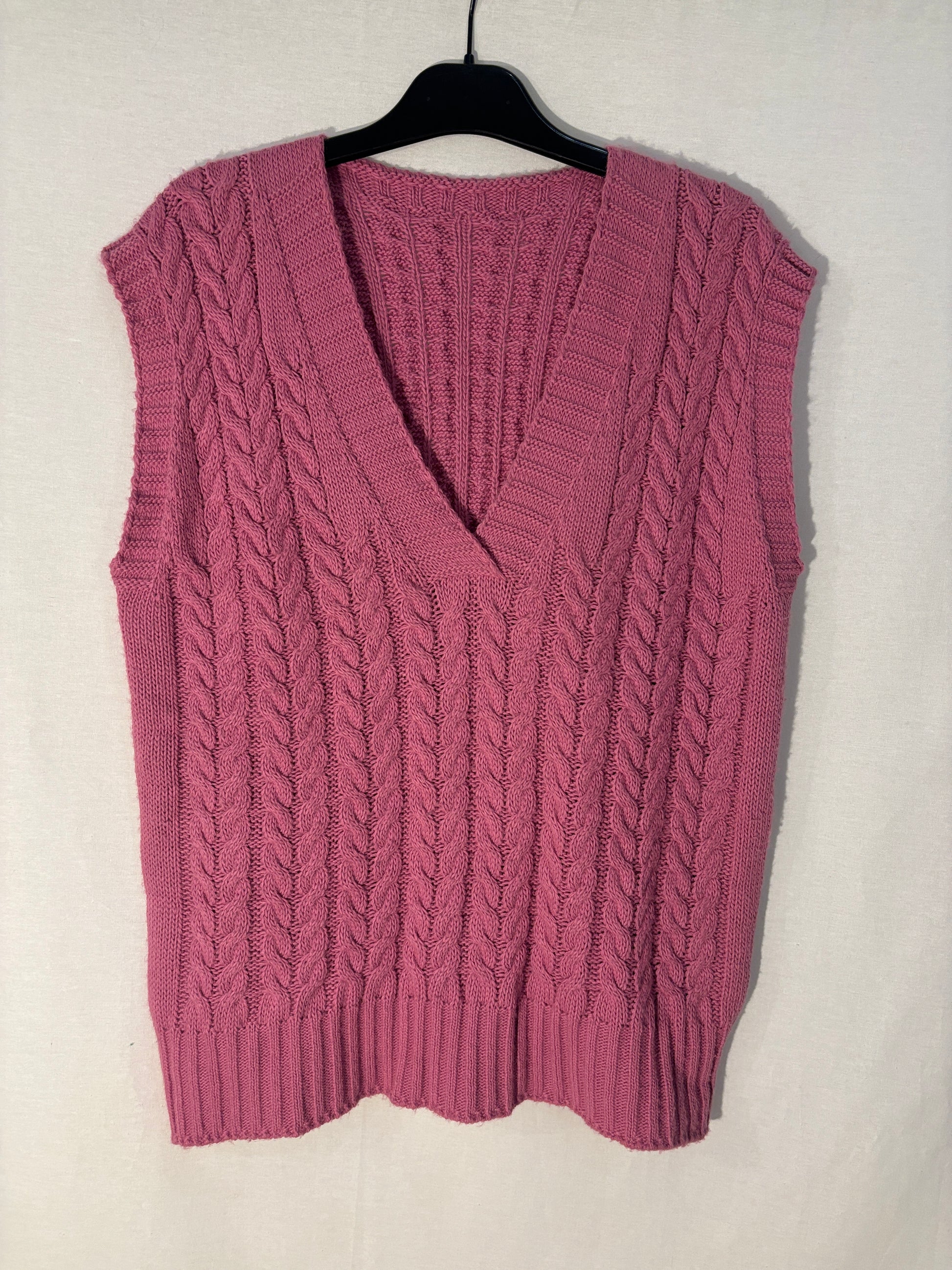 Élégant pull sans manche confectionné en Italie, alliant qualité artisanale et style intemporel. Conservé en très bon état, il offre une polyvalence remarquable avec sa taille unique adaptée aux silhouettes XS à L. La nuance rose subtile se marie parfaitement avec vos pièces essentielles pour créer des ensembles sophistiqués et modernes. Un basique de luxe à intégrer sans tarder à votre collection.