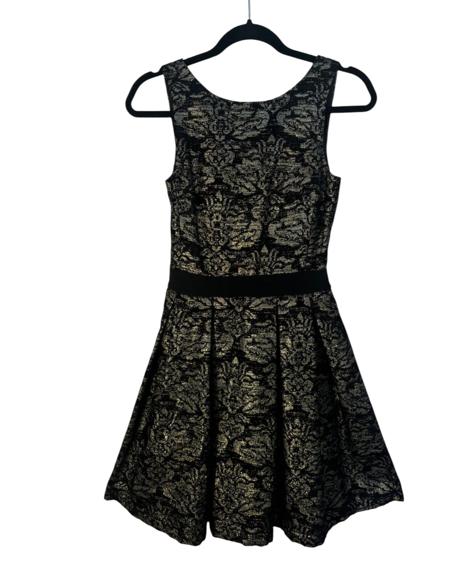 Robe imprimée de chez Pimkie, taille 36, présentant un motif floral sur fond doré. Article en excellent état, chic et élégance.