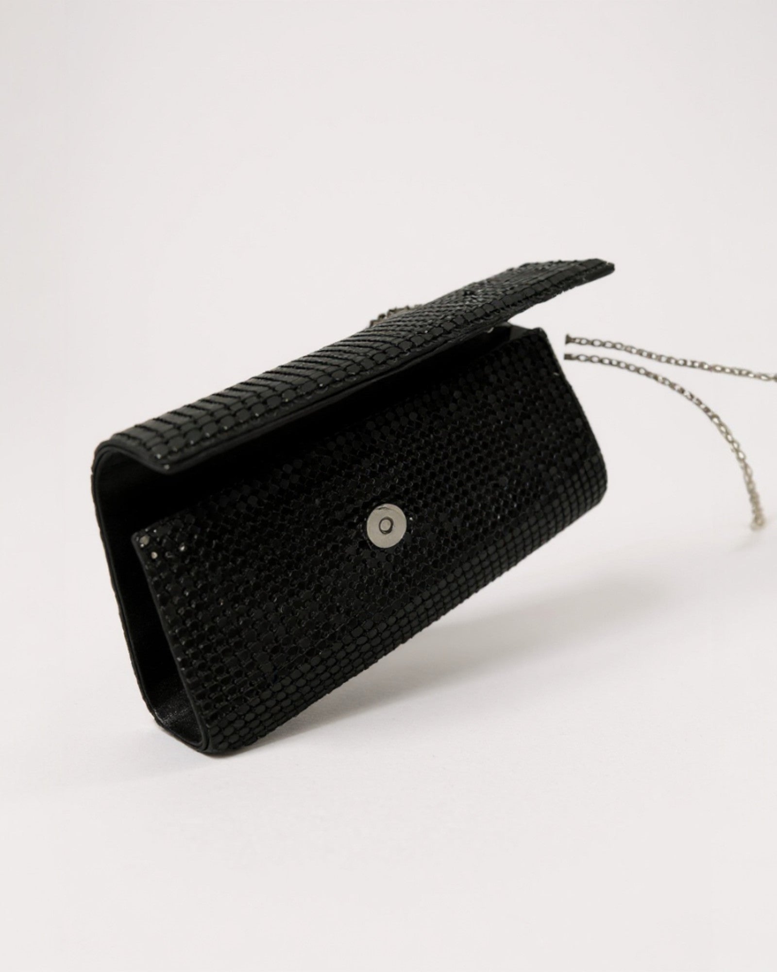 Élégant sac de cérémonie en noir, neuf avec étiquette, parfait pour compléter votre tenue avec raffinement.