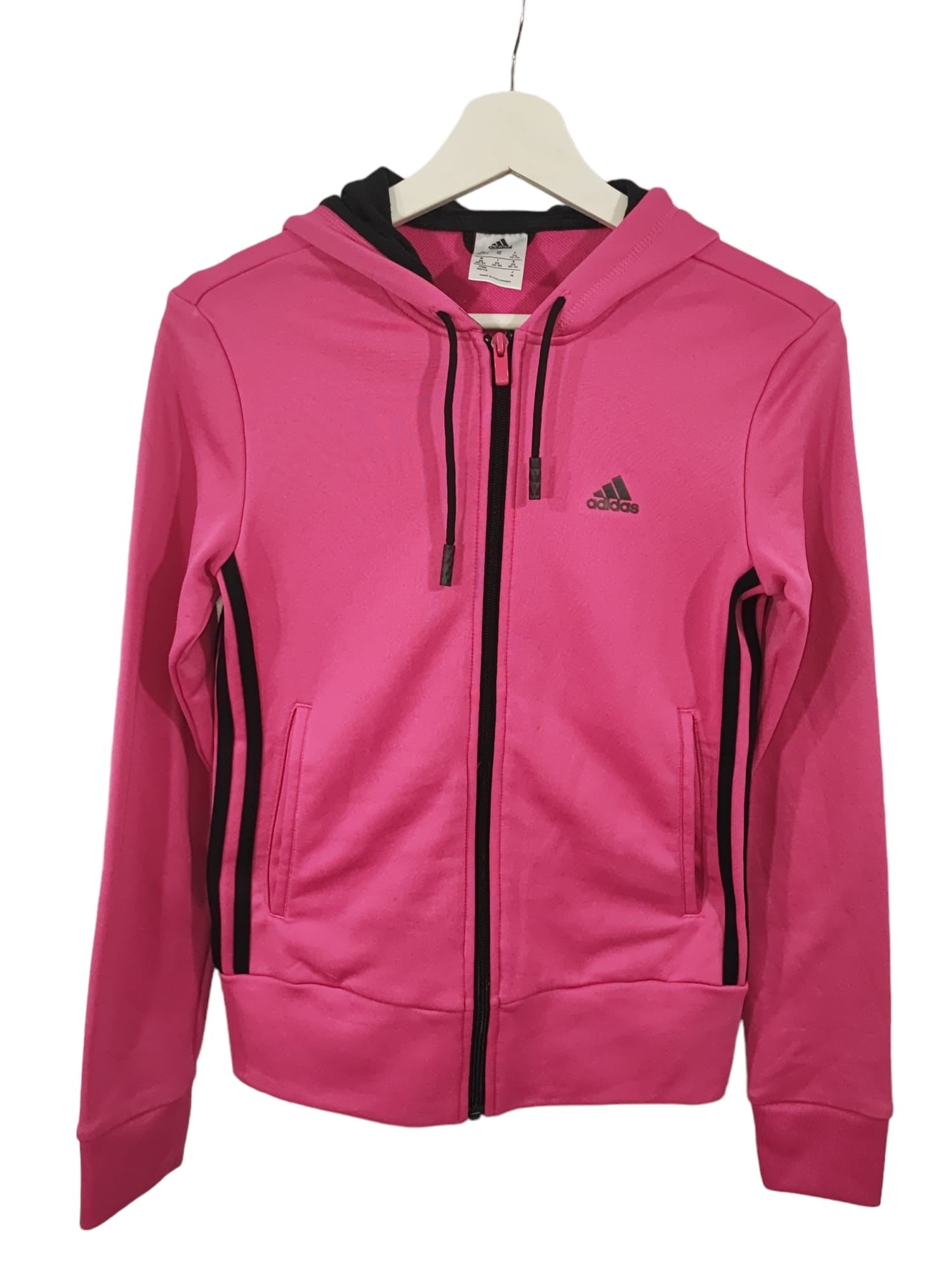 Sweat à capuche Adidas, taille XS, nuance rose bonbon, en bon état.