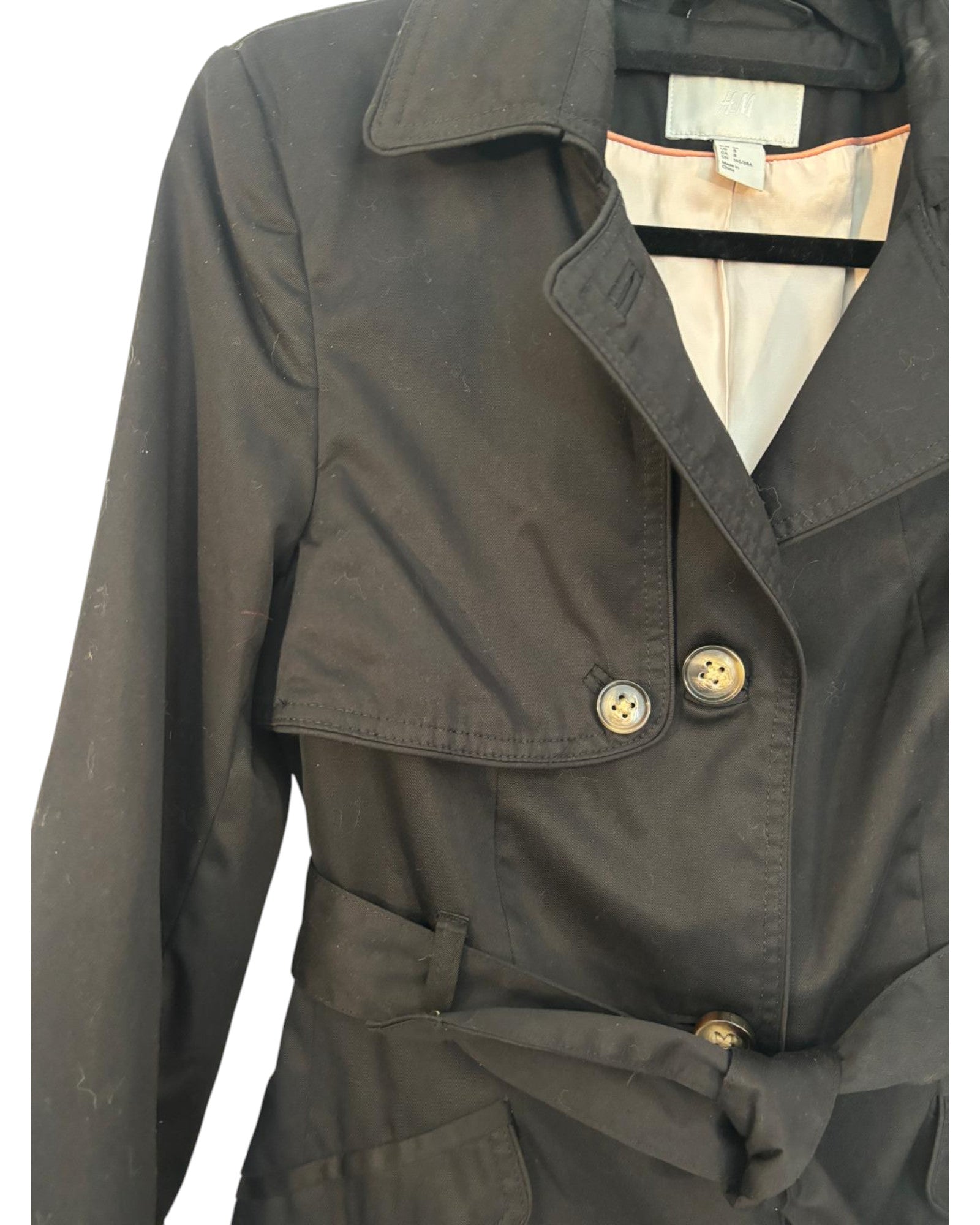 Trench H&M en taille 38, coloris noir, en excellent état. Une pièce parfaite pour allier élégance et polyvalence au quotidien.