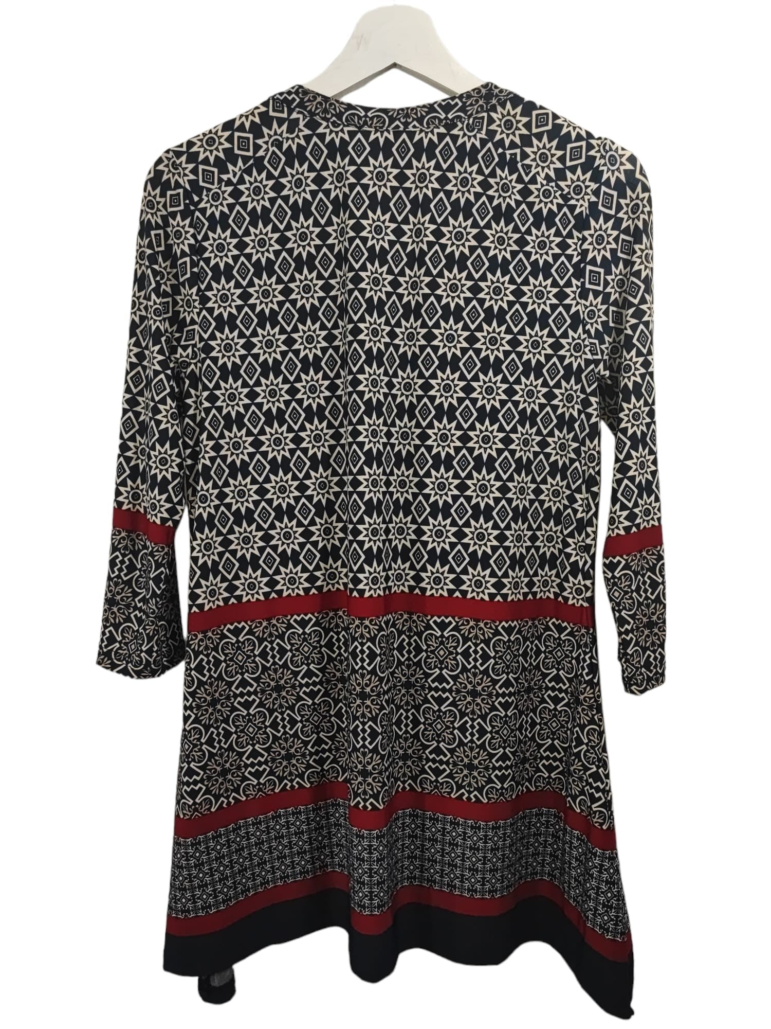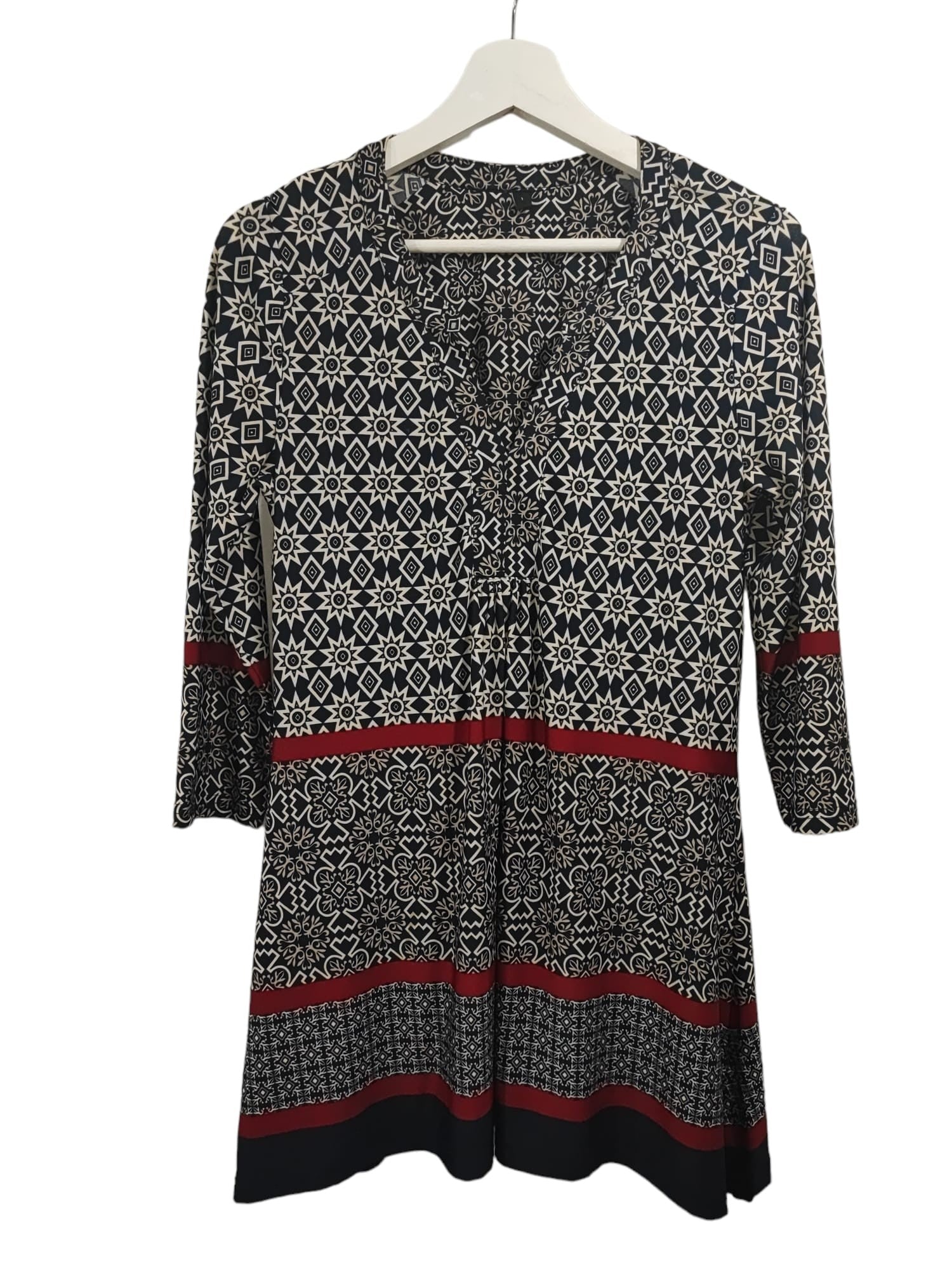 Succombez à cette tunique légère en taille S, aux nuances bleu marine et rouge élégantes. Idéale pour ajouter une touche de fraîcheur et de sophistication à votre garde-robe.