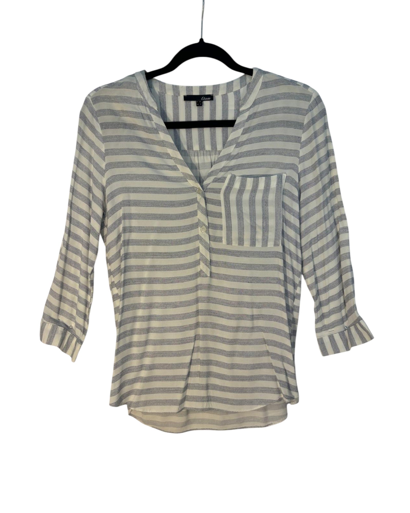 Découvrez cette blouse à manches trois-quarts signée Etam, conçue pour une silhouette élégante en taille 34. Sa teinte bleu claire s'accorde facilement avec divers styles et couleurs de votre garde-robe. En très bon état, elle allie confort et raffinement, idéale pour un usage quotidien ou des occasions décontractées. Cette pièce polyvalente saura compléter avec finesse votre collection de vêtements. très bonne état